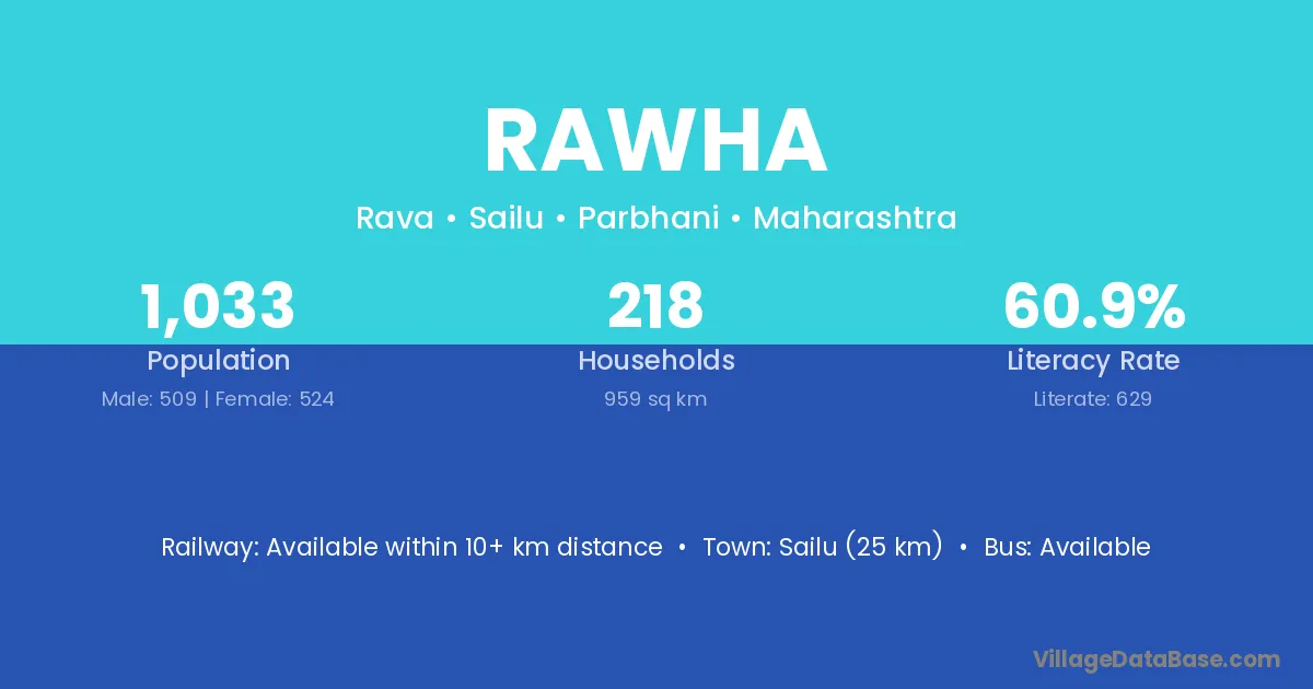 Sailu (25 km) is the nearest town to Rawha village for major economic activities and is located approximately 25 km away.