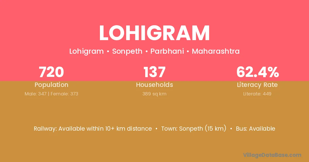 Sonpeth (15 km) is the nearest town to Lohigram village for major economic activities and is located approximately 15 km away.