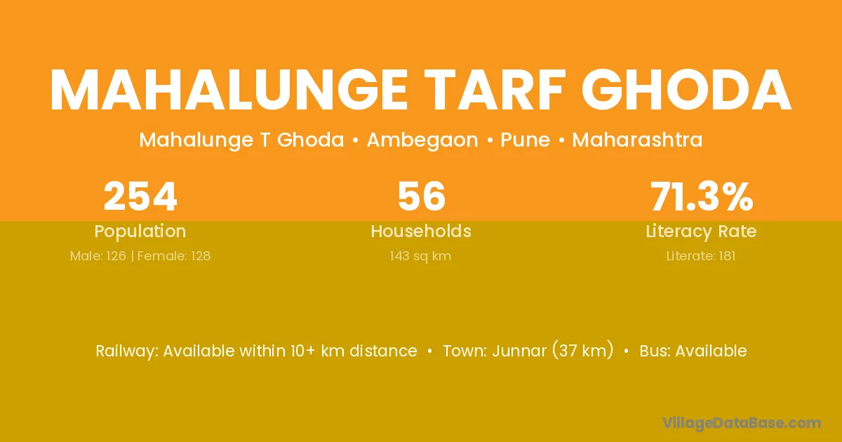 Mahalunge Tarf Ghoda village has a total population of 254 people, of which 126 are males and 128 are females.