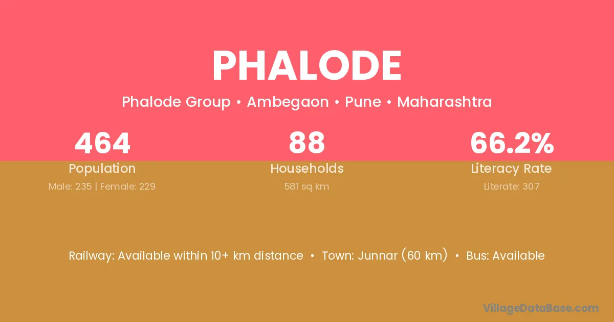 Junnar (60 km) is the nearest town to Phalode village for major economic activities and is located approximately 60 km away.
