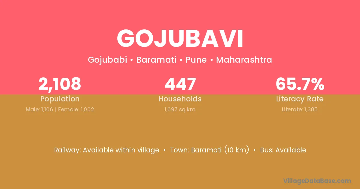 Baramati (10 km) is the nearest town to Gojubavi village for major economic activities and is located approximately 10 km away.