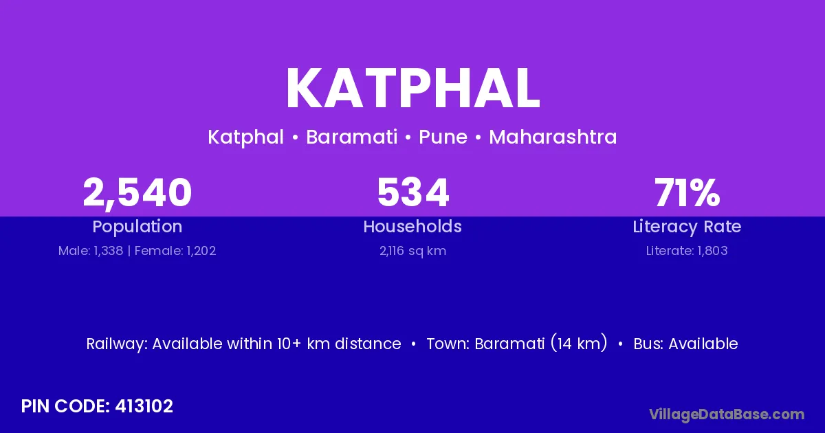 Baramati (14 km) is the nearest town to Katphal village for major economic activities and is located approximately 14 km away.