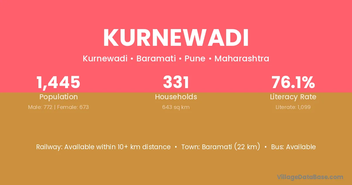 Baramati (22 km) is the nearest town to Kurnewadi village for major economic activities and is located approximately 22 km away.