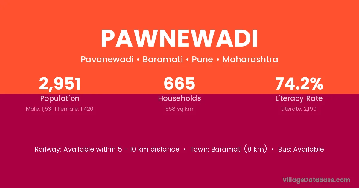 Pawnewadi village has a total population of 2,951 people, of which 1,531 are males and 1,420 are females.