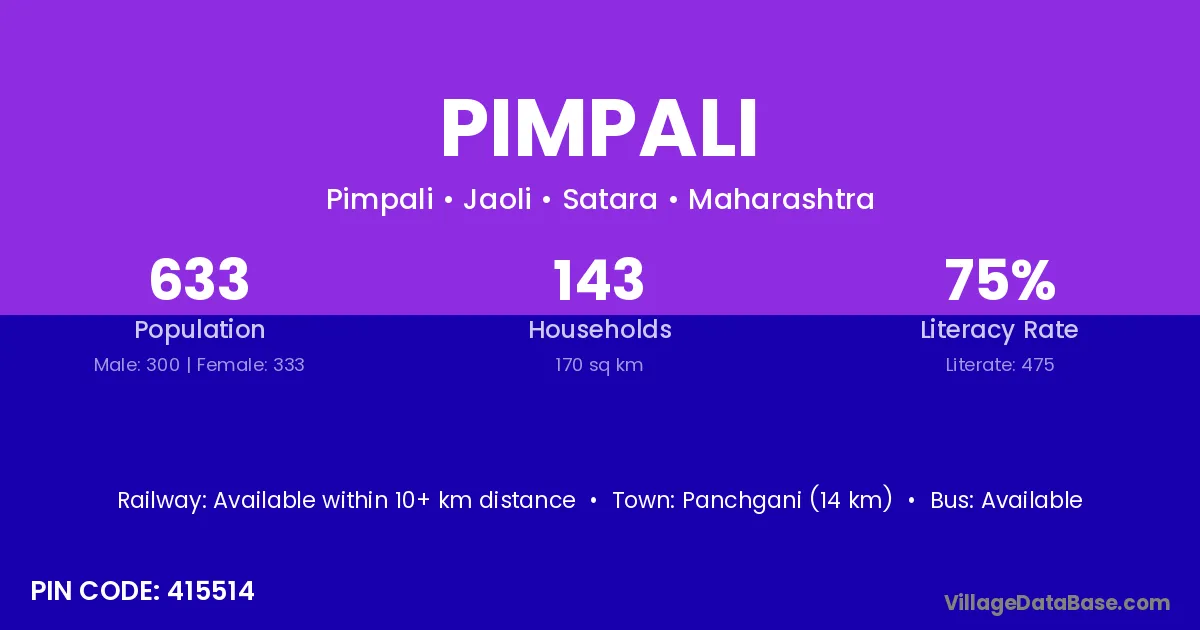 Baramati (6 km) is the nearest town to Pimpali village for major economic activities and is located approximately 6 km away.