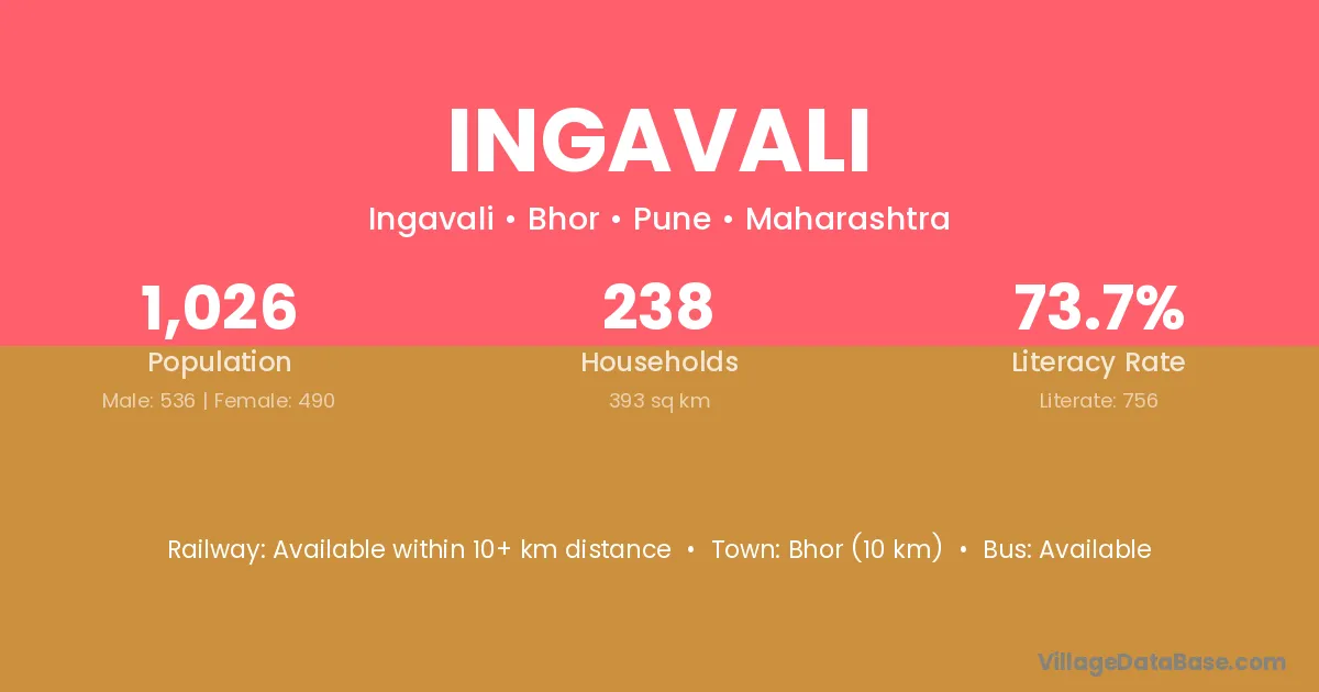 Bhor (10 km) is the nearest town to Ingavali village for major economic activities and is located approximately 10 km away.