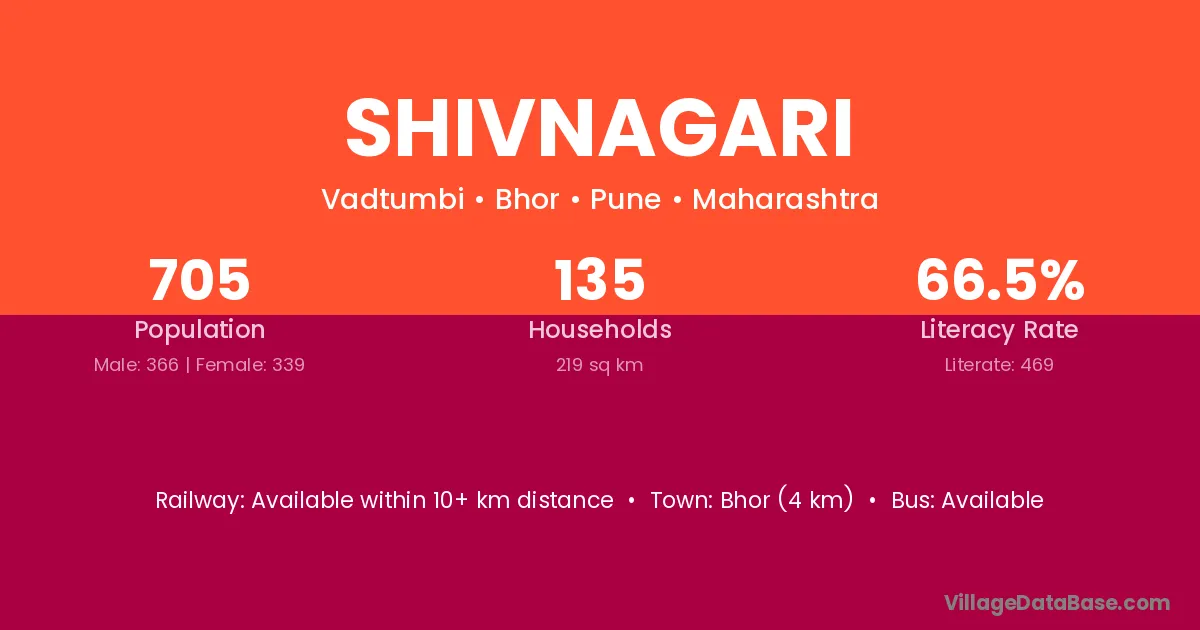 Bhor (4 km) is the nearest town to Shivnagari village for major economic activities and is located approximately 4 km away.