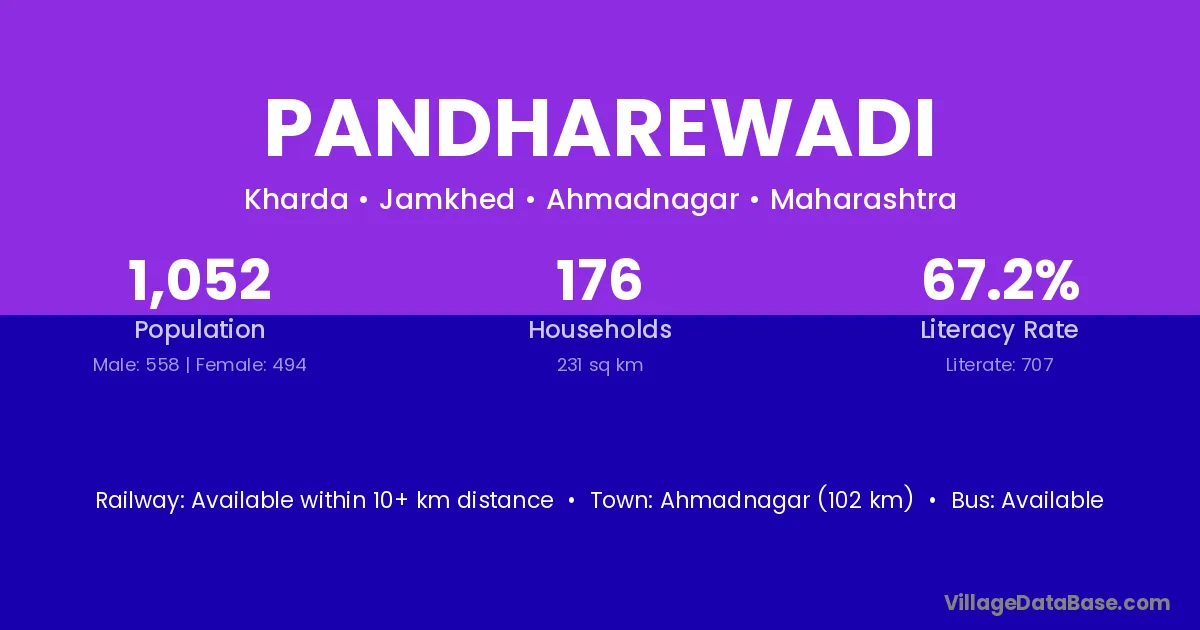 Daund (13 km) is the nearest town to Pandharewadi village for major economic activities and is located approximately 13 km away.