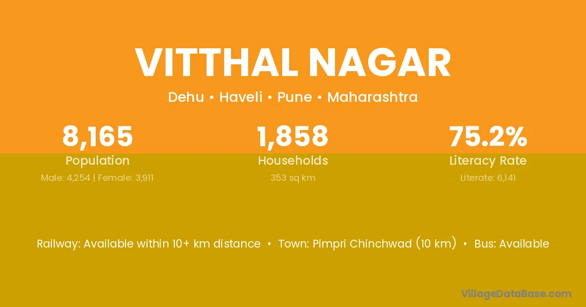Vitthal Nagar village has a total population of 8,165 people, of which 4,254 are males and 3,911 are females.