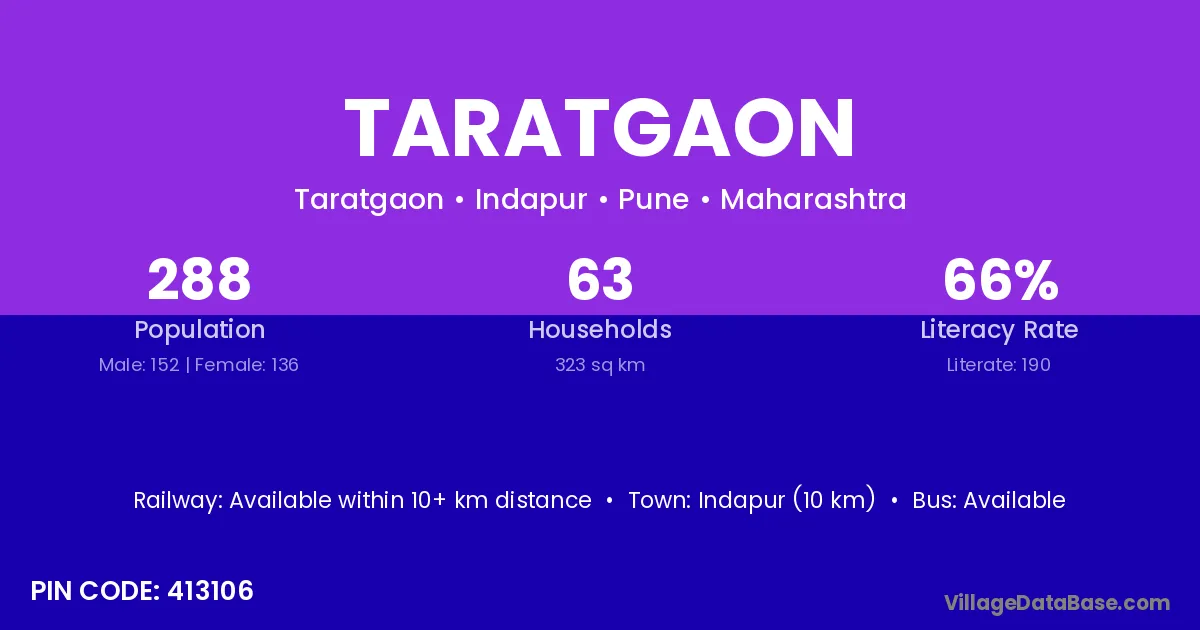 Indapur (10 km) is the nearest town to Taratgaon village for major economic activities and is located approximately 10 km away.