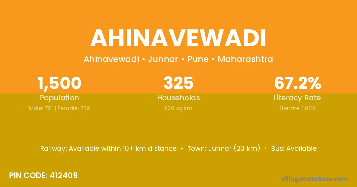 Ahinavewadi village has a total population of 1,500 people, of which 761 are males and 739 are females.