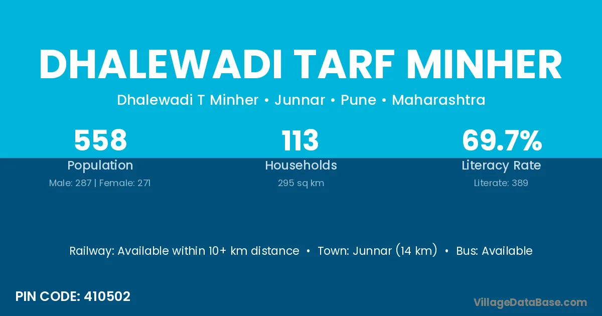 Dhalewadi Tarf Minher village has a total population of 558 people, of which 287 are males and 271 are females.