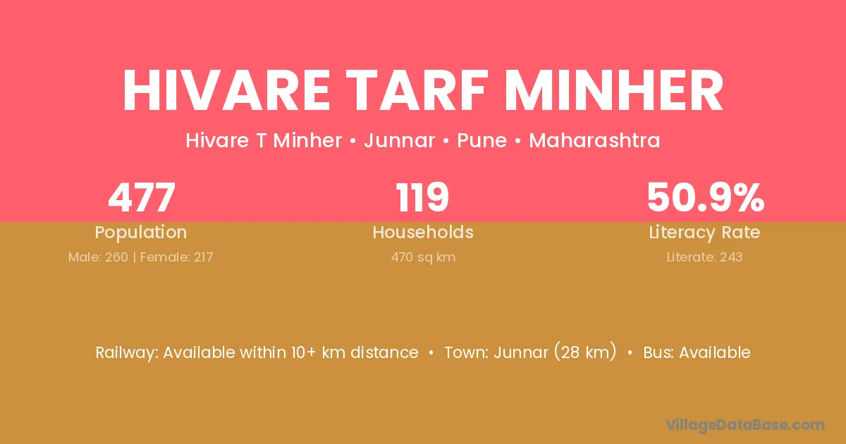 Hivare Tarf Minher village has a total population of 477 people, of which 260 are males and 217 are females.