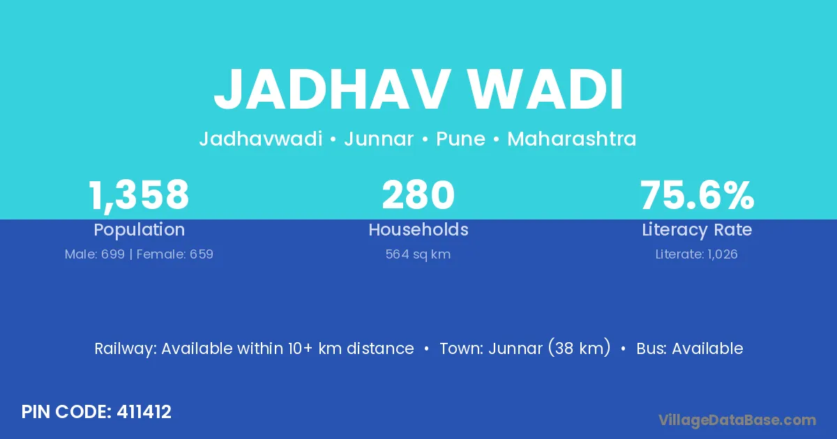 Jadhav Wadi village has a total population of 1,358 people, of which 699 are males and 659 are females.
