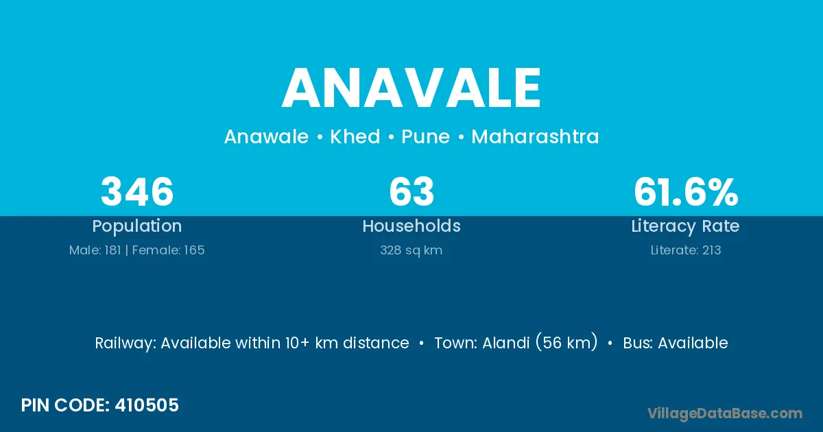Alandi (56 km) is the nearest town to Anavale village for major economic activities and is located approximately 56 km away.