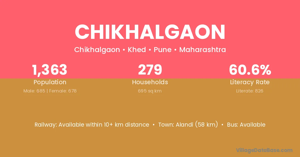 Chikhalgaon village has a total population of 1,363 people, of which 685 are males and 678 are females.