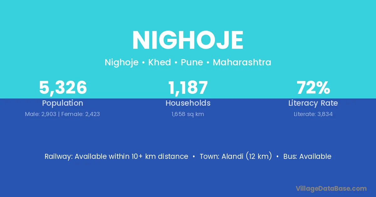 Alandi (12 km) is the nearest town to Nighoje village for major economic activities and is located approximately 12 km away.
