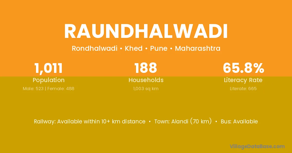 Raundhalwadi village has a total population of 1,011 people, of which 523 are males and 488 are females.