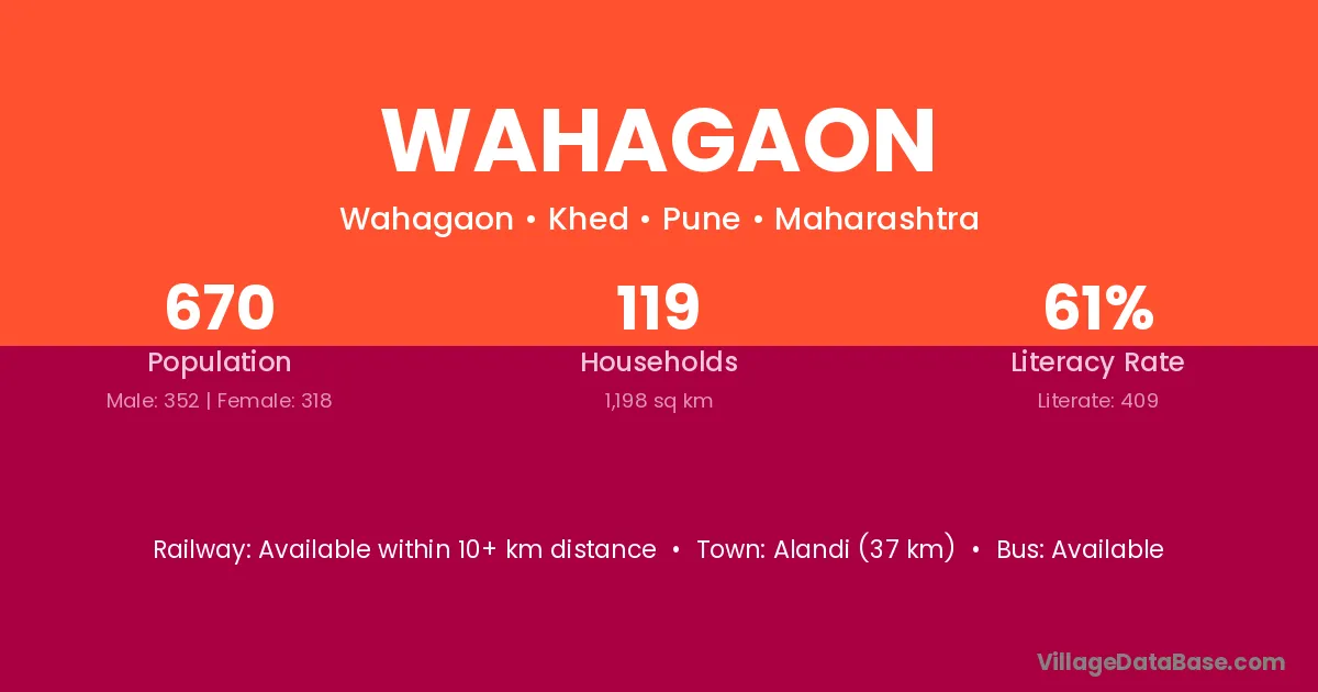 Alandi (37 km) is the nearest town to Wahagaon village for major economic activities and is located approximately 37 km away.