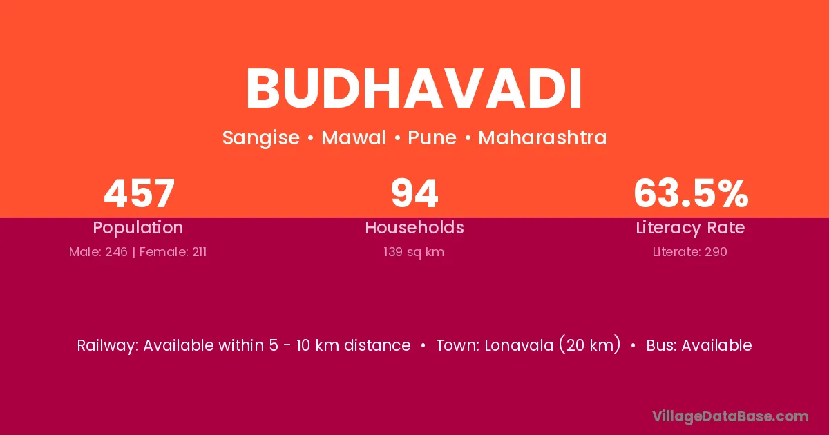 Lonavala (20 km) is the nearest town to Budhavadi village for major economic activities and is located approximately 20 km away.