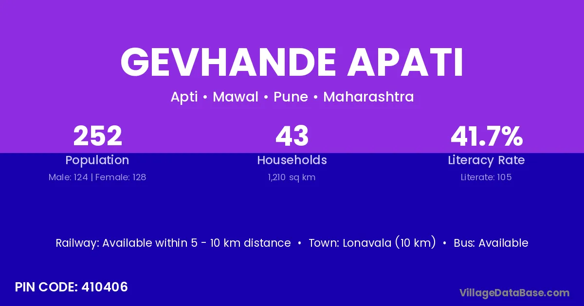 Gevhande Apati village has a total population of 252 people, of which 124 are males and 128 are females.