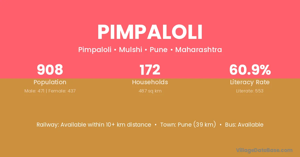Lonavala (18 km) is the nearest town to Pimpaloli village for major economic activities and is located approximately 18 km away.