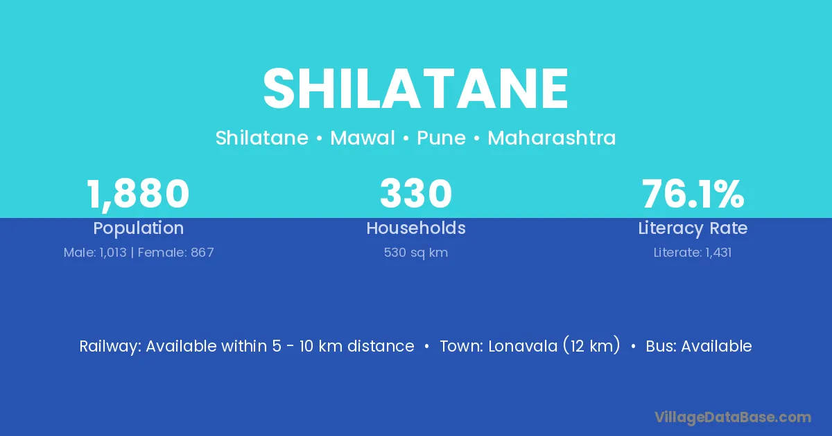 Lonavala (12 km) is the nearest town to Shilatane village for major economic activities and is located approximately 12 km away.