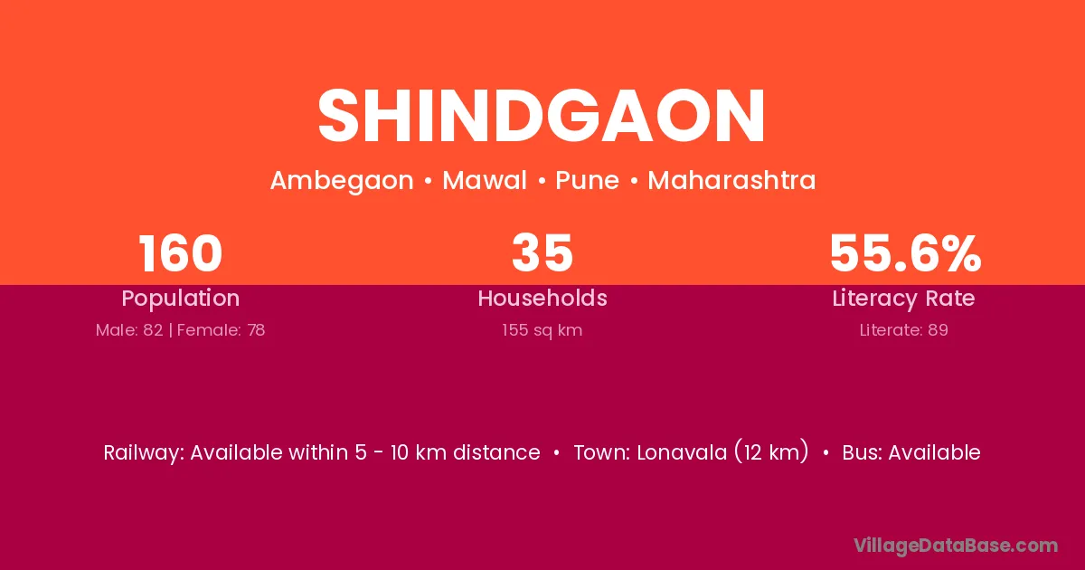 Lonavala (12 km) is the nearest town to Shindgaon village for major economic activities and is located approximately 12 km away.
