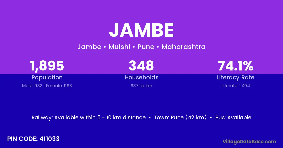 Pune (42 km) is the nearest town to Jambe village for major economic activities and is located approximately 42 km away.