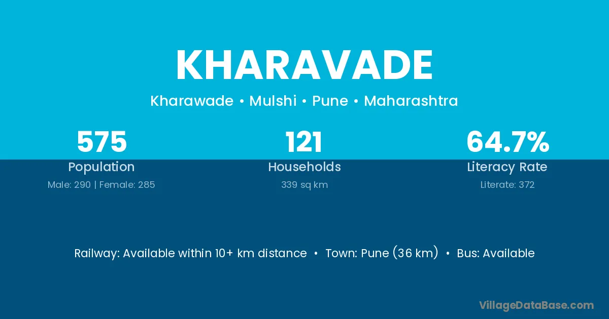 Kharavade village has a total population of 575 people, of which 290 are males and 285 are females.