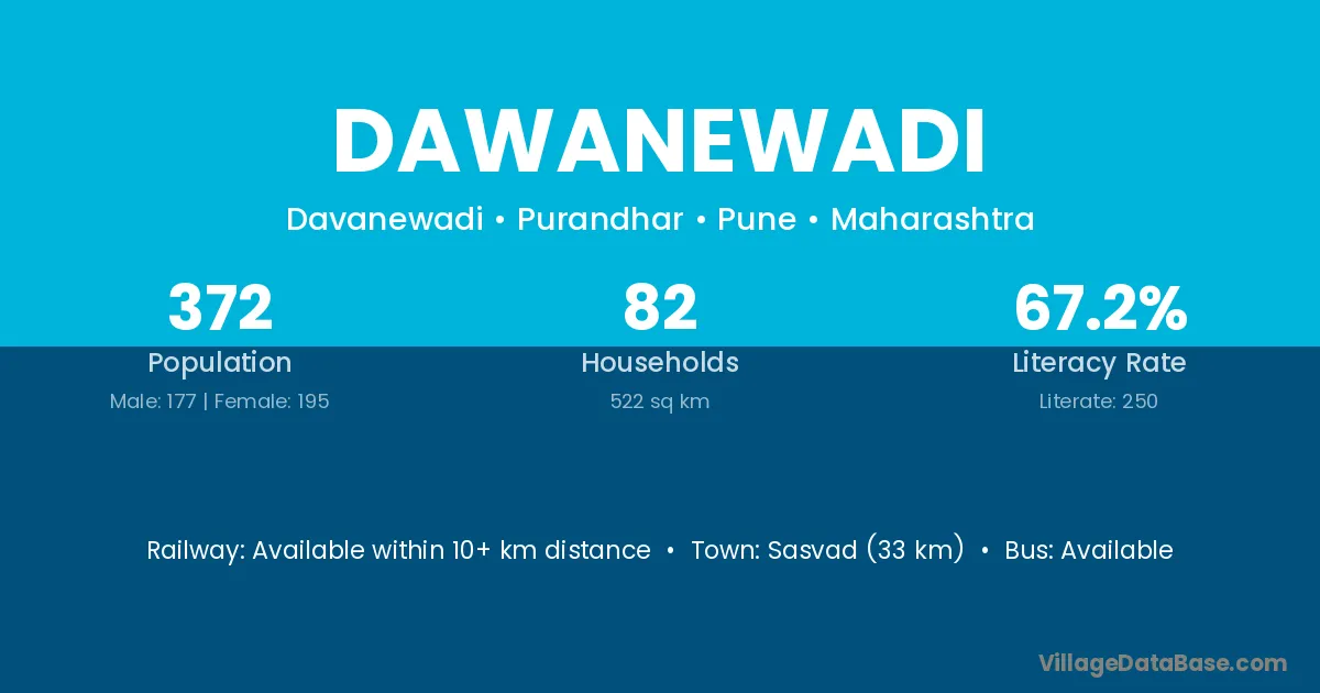 Dawanewadi village has a total population of 372 people, of which 177 are males and 195 are females.