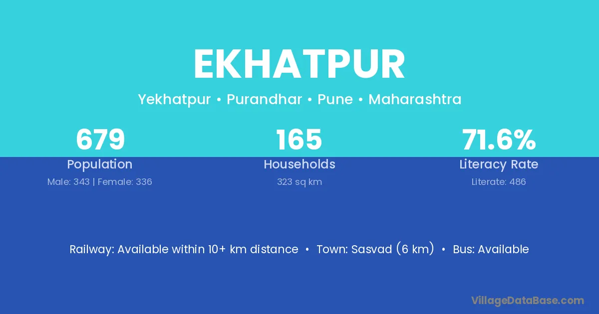 Sasvad (6 km) is the nearest town to Ekhatpur village for major economic activities and is located approximately 6 km away.