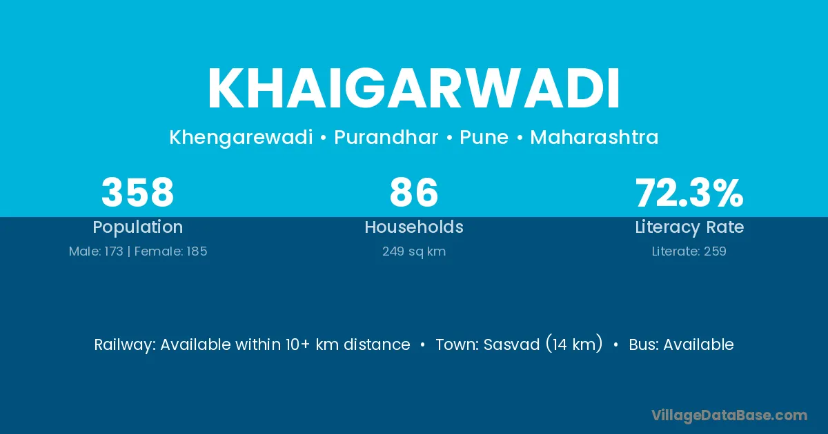 Sasvad (14 km) is the nearest town to Khaigarwadi village for major economic activities and is located approximately 14 km away.