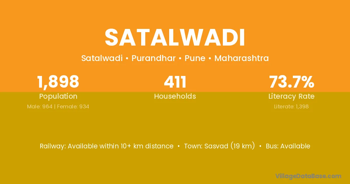 Sasvad (19 km) is the nearest town to Satalwadi village for major economic activities and is located approximately 19 km away.