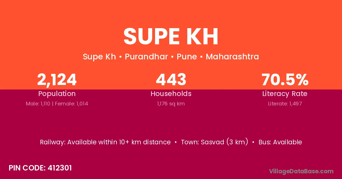 Sasvad (3 km) is the nearest town to Supe Kh village for major economic activities and is located approximately 3 km away.
