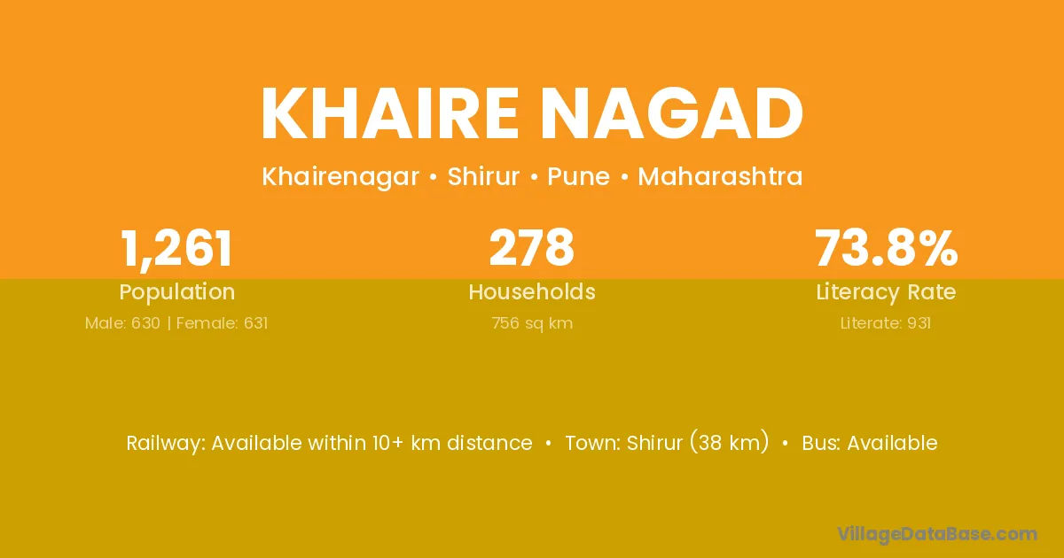 Shirur (38 km) is the nearest town to Khaire Nagad village for major economic activities and is located approximately 38 km away.