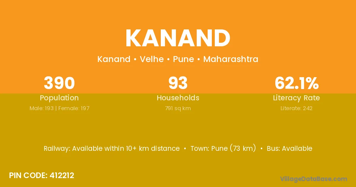 Pune (73 km) is the nearest town to Kanand village for major economic activities and is located approximately 73 km away.
