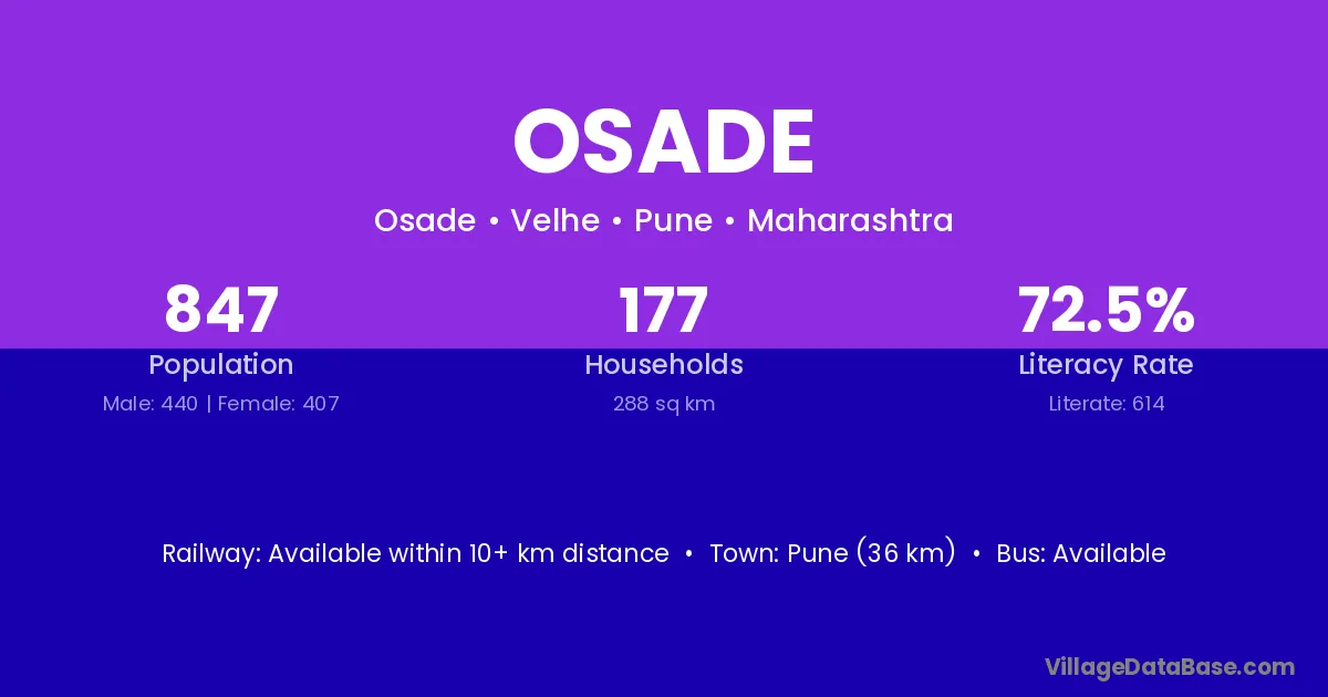 Pune (36 km) is the nearest town to Osade village for major economic activities and is located approximately 36 km away.