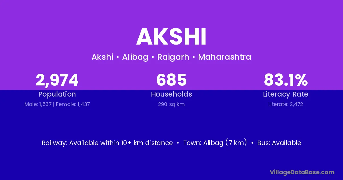 Alibag (7 km) is the nearest town to Akshi village for major economic activities and is located approximately 7 km away.