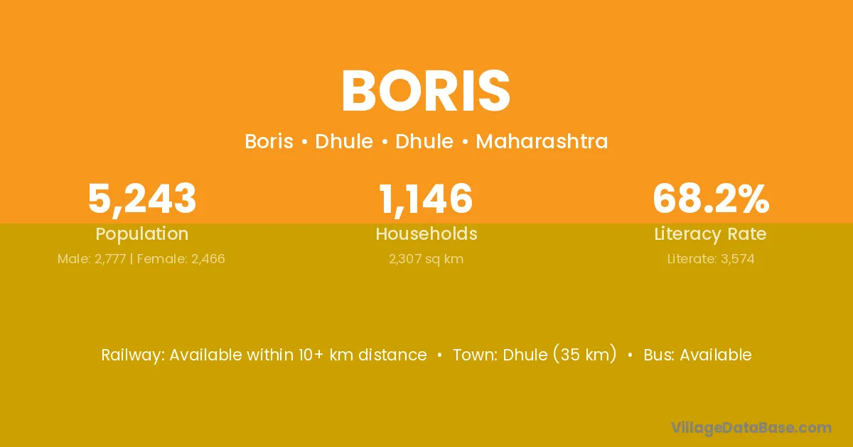 Alibag (7 km) is the nearest town to Boris village for major economic activities and is located approximately 7 km away.