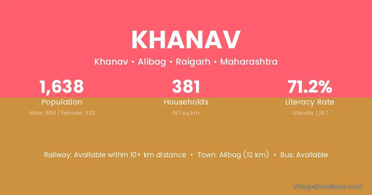 Alibag (12 km) is the nearest town to Khanav village for major economic activities and is located approximately 12 km away.