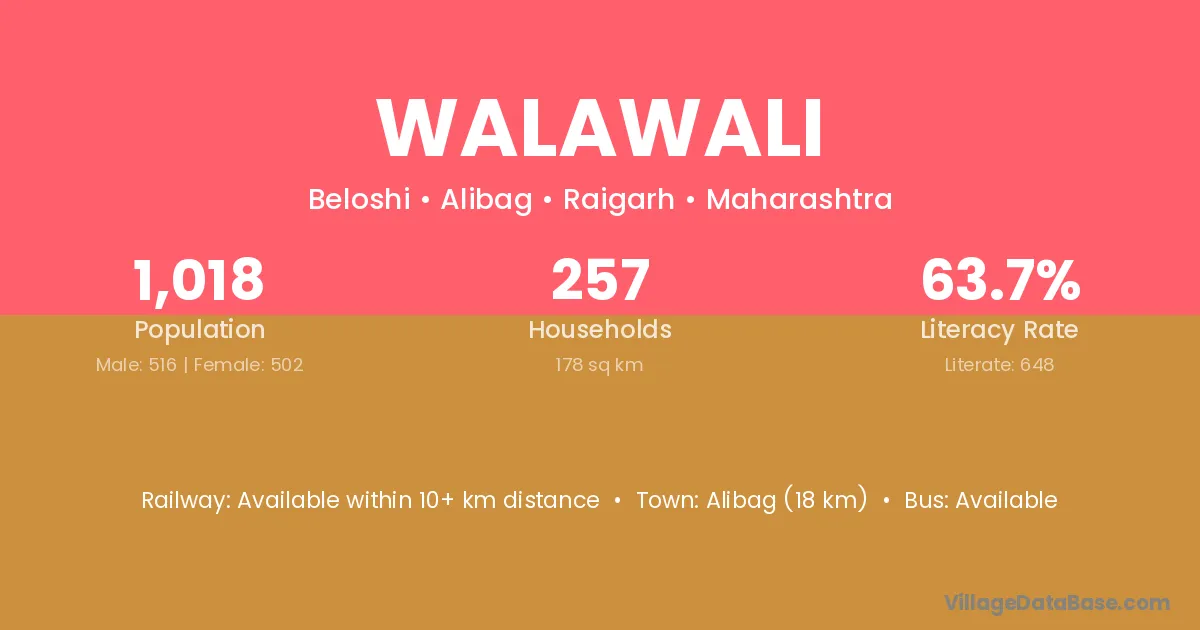Alibag (18 km) is the nearest town to Walawali village for major economic activities and is located approximately 18 km away.