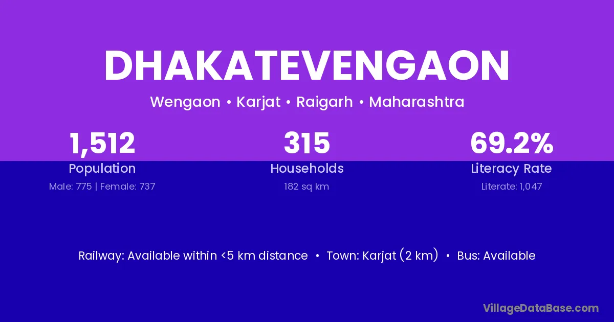 Karjat (2 km) is the nearest town to Dhakatevengaon village for major economic activities and is located approximately 2 km away.