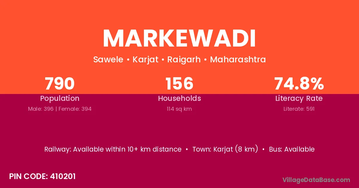 Karjat (8 km) is the nearest town to Markewadi village for major economic activities and is located approximately 8 km away.