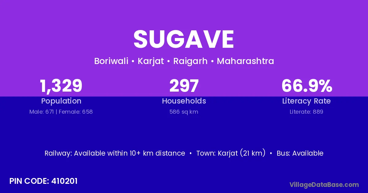 Karjat (21 km) is the nearest town to Sugave village for major economic activities and is located approximately 21 km away.