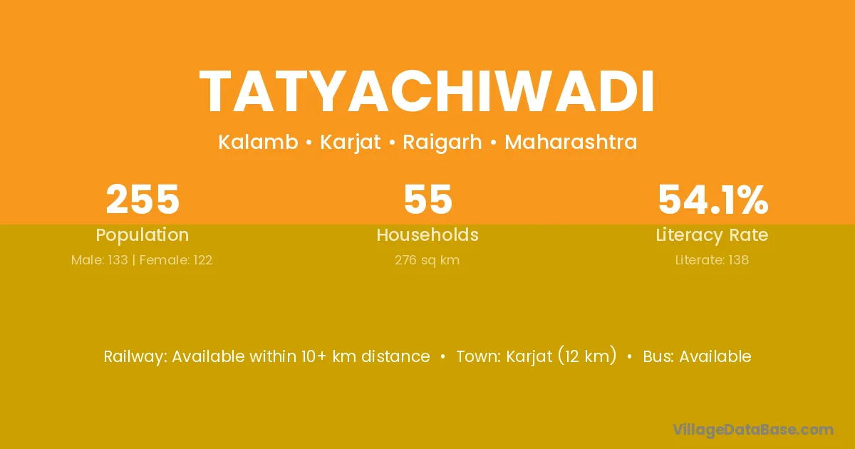 Tatyachiwadi village has a total population of 255 people, of which 133 are males and 122 are females.