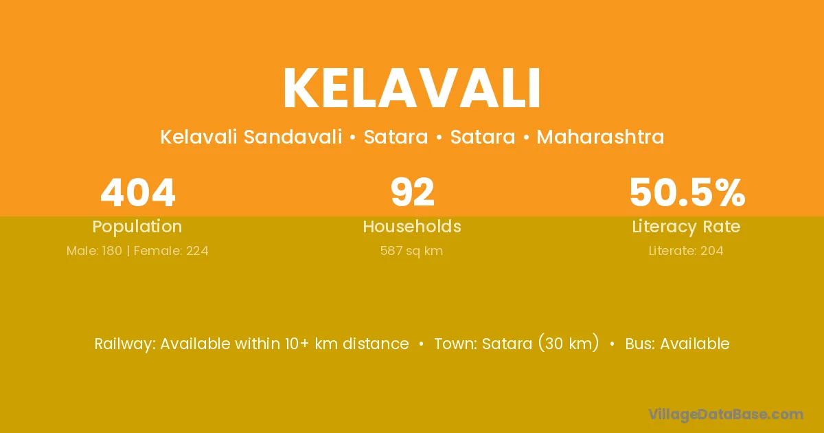 Khopoli (12 km) is the nearest town to Kelavali village for major economic activities and is located approximately 12 km away.