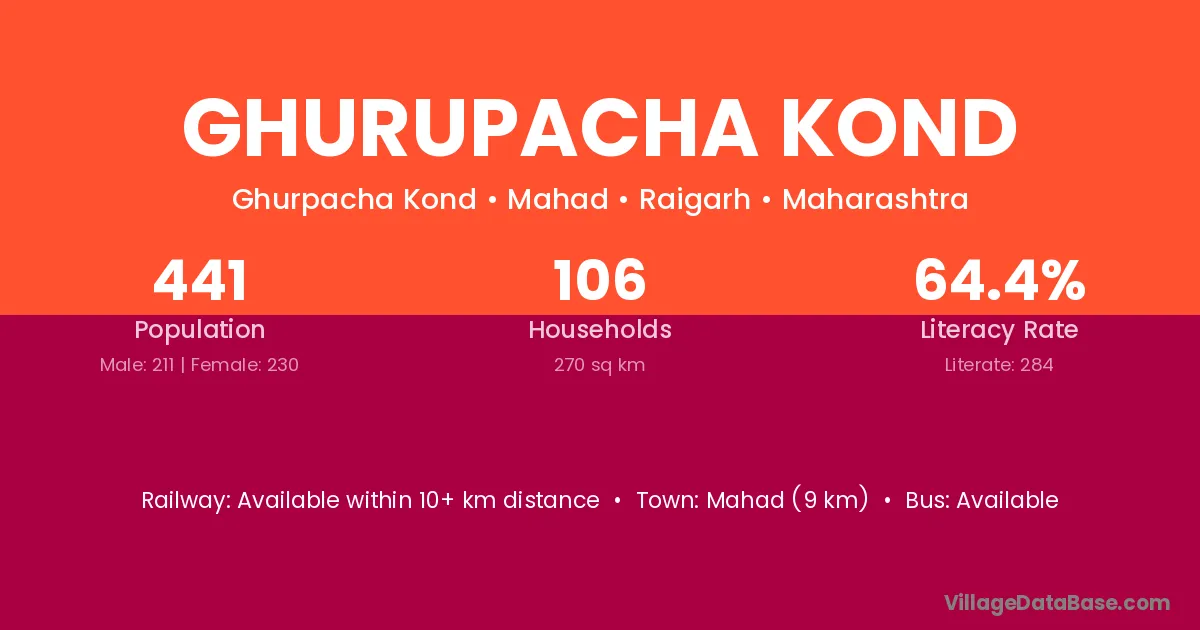 Mahad (9 km) is the nearest town to Ghurupacha Kond village for major economic activities and is located approximately 9 km away.