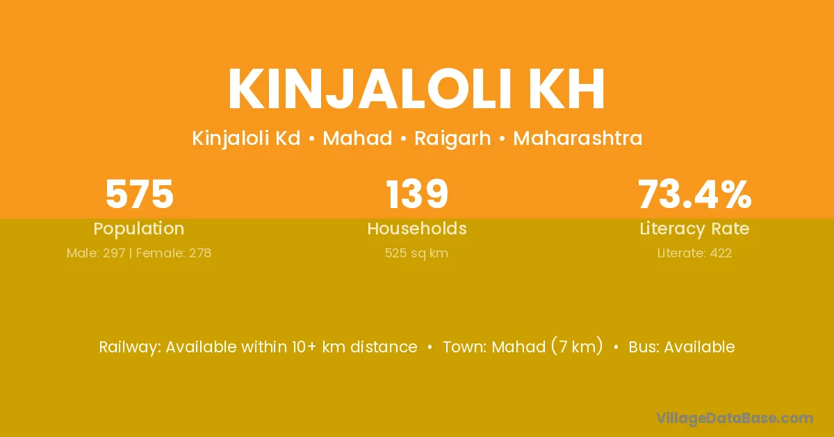 Mahad (7 km) is the nearest town to Kinjaloli Kh village for major economic activities and is located approximately 7 km away.