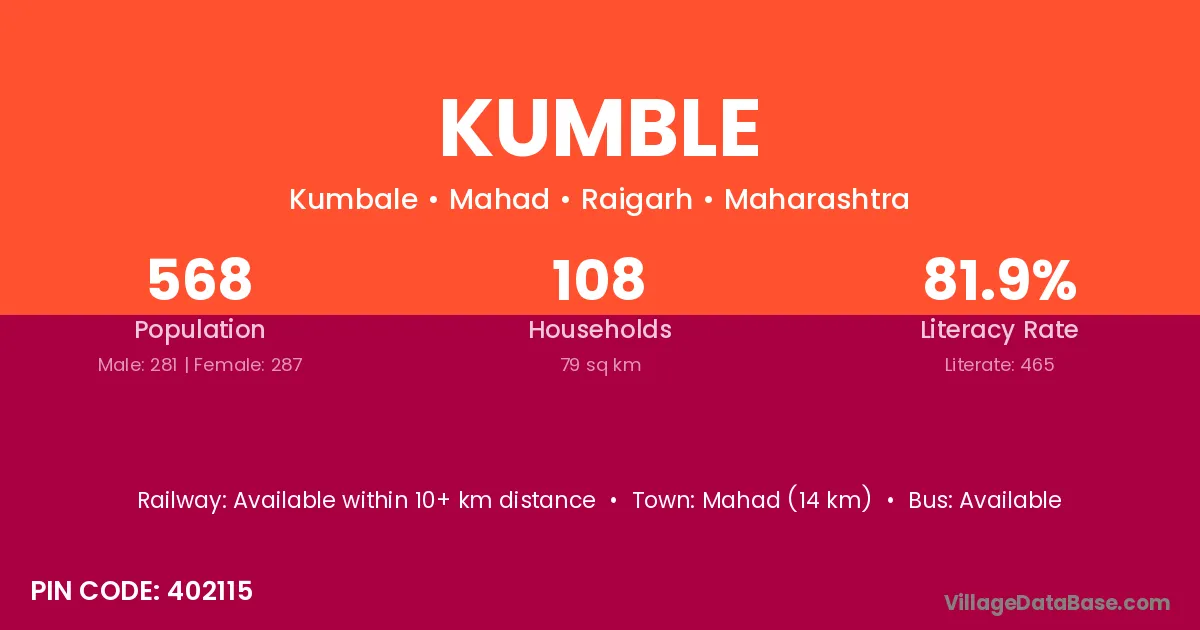Mahad (14 km) is the nearest town to Kumble village for major economic activities and is located approximately 14 km away.